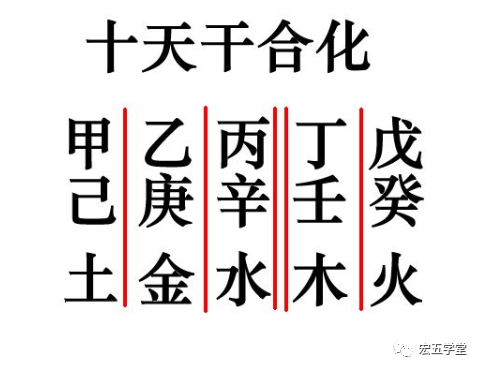十天干还可以合化木火土金水,为了方便记忆,见下图三,这是最好的记忆方法,没必要去背口诀。从丁壬合化木开始,戊癸合化火,甲己合化土,乙庚合化金,丙辛合化水,看到图就一目了然了。我们就可算出水的日子,水火不容,是最容易发心脏病的日子。