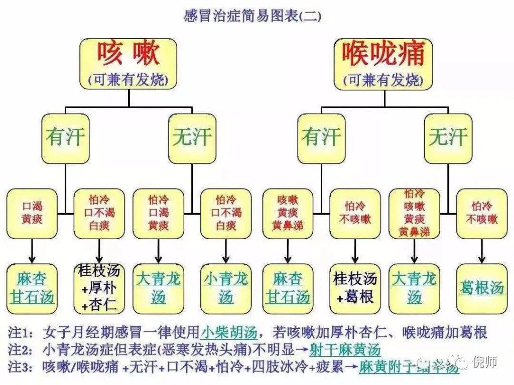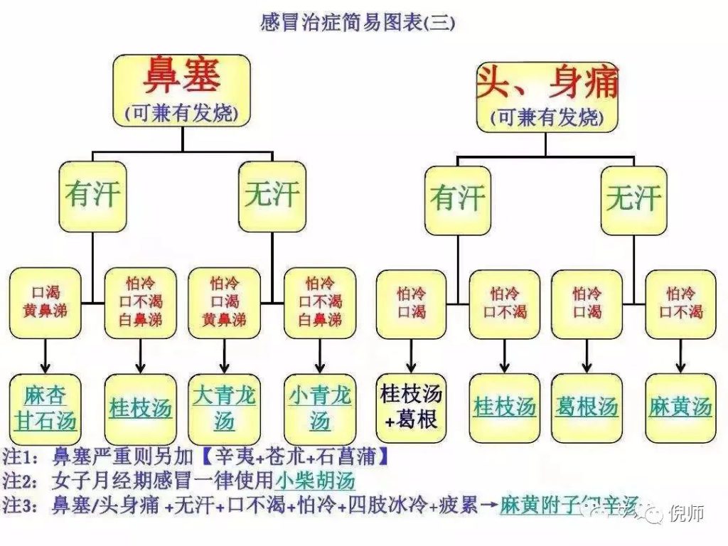 真正正统中医学在治疗感冒时,最常使用的处方我帮大家归纳一下,让大家都好记,也都会使用。中医治疗感冒是依据不同的感冒症状来开立处方,不是依据西医区分为那类病毒来开方子的。