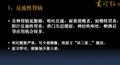 《伤寒论》黄连三两(15g) 桂枝三两(15g) 干姜三两(15g) 甘草三两(15g) 人参二两(10g) 半夏半升(15g) 大枣十二枚(20g) 上七味,以水一斗,煮取六升,去滓,温服,昼三夜二。