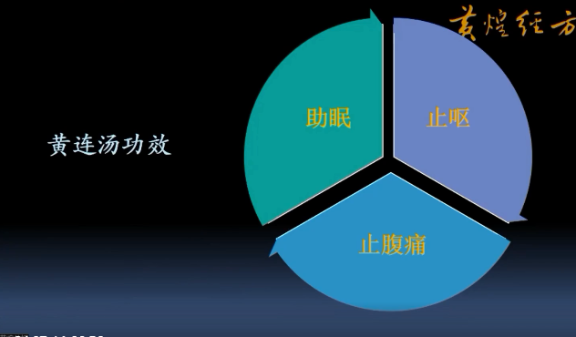 恶风、发热、汗出是桂枝证,本方的特征是汗出而热不退、或退不清,甚或汗出而烦躁者。也有不发热者,但自觉身热、烦躁而汗出者。其汗有自汗者,也有盗汗者。烦躁是黄连证,心动悸是桂枝证,故本方证为烦躁而动悸。有烦躁而心悸者,有烦躁而气上冲胸者,也有烦躁而身热、汗出、胸闷者。临床上不少患者不以烦躁为主诉,医生可询问其情绪、注意力是否集中、睡眠是否障碍等,大致可以判断。