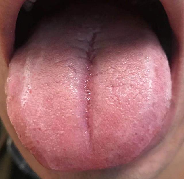 黄煌教授将这种舌头两边两条由细小的唾液泡沫堆成的细线称之为“半夏线”,认为多数是痰湿郁阻所致,见到这种舌一般都会用到半夏,配伍行气之品,如厚朴、紫苏之类。